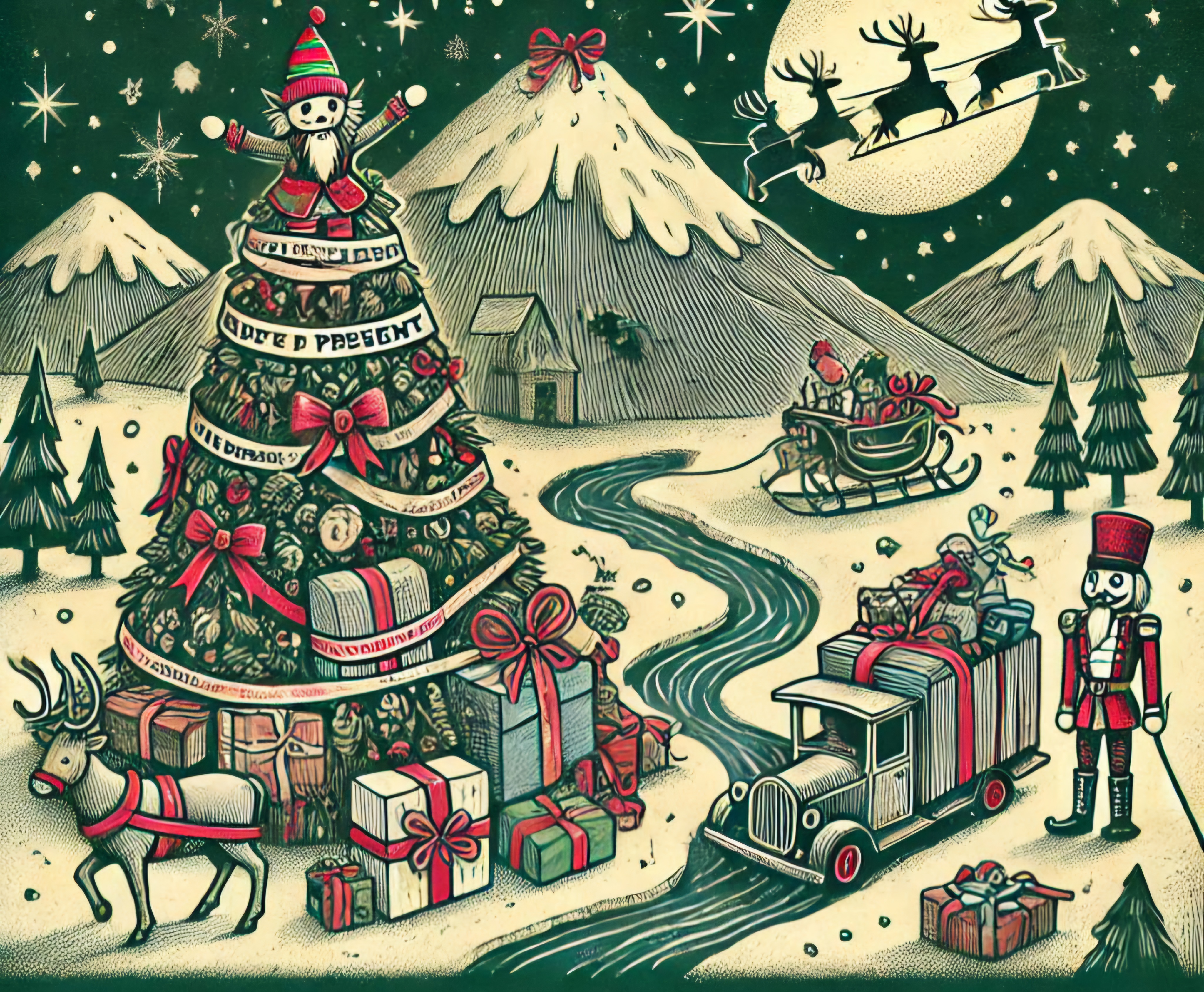 nutcracker, reindeer, snowman